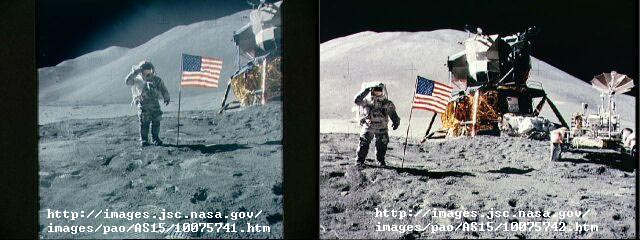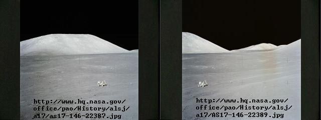 Below: Two different photos with the same background. To my eye, it seems likely that the second image is taken from just to the left of the lander, facing the same direction.